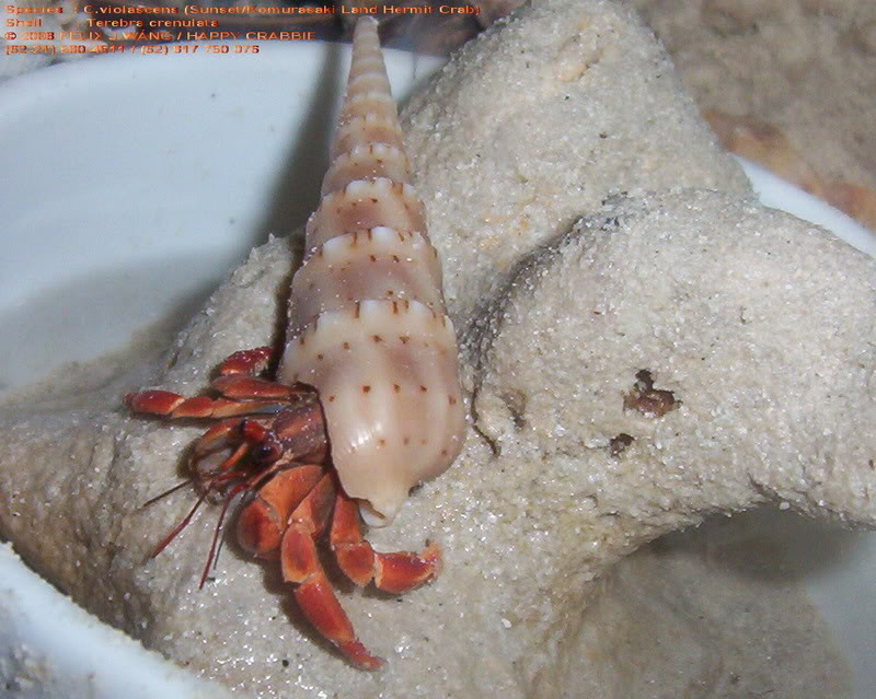 8. Coenobita violascens ( kelomang ungu-jingga / kelomang sunset - diidentifikasi keberadaannya di wilayah Indonesia pertama kali pada tahun 2005 oleh Félix J.Wáng ,penulis buku "Petunjuk Praktis Memelihara Kelomang Darat" )